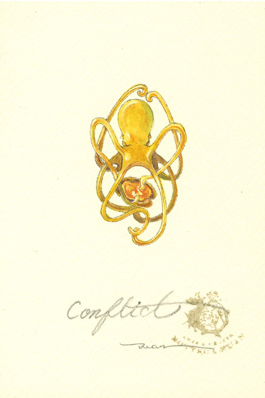 In this work, I gave shape to the cycle of lives by having the larva hold an orange stone as a symbol of life. I expressed the fact that even if the appearance changes, the glow of life remains unchanged.