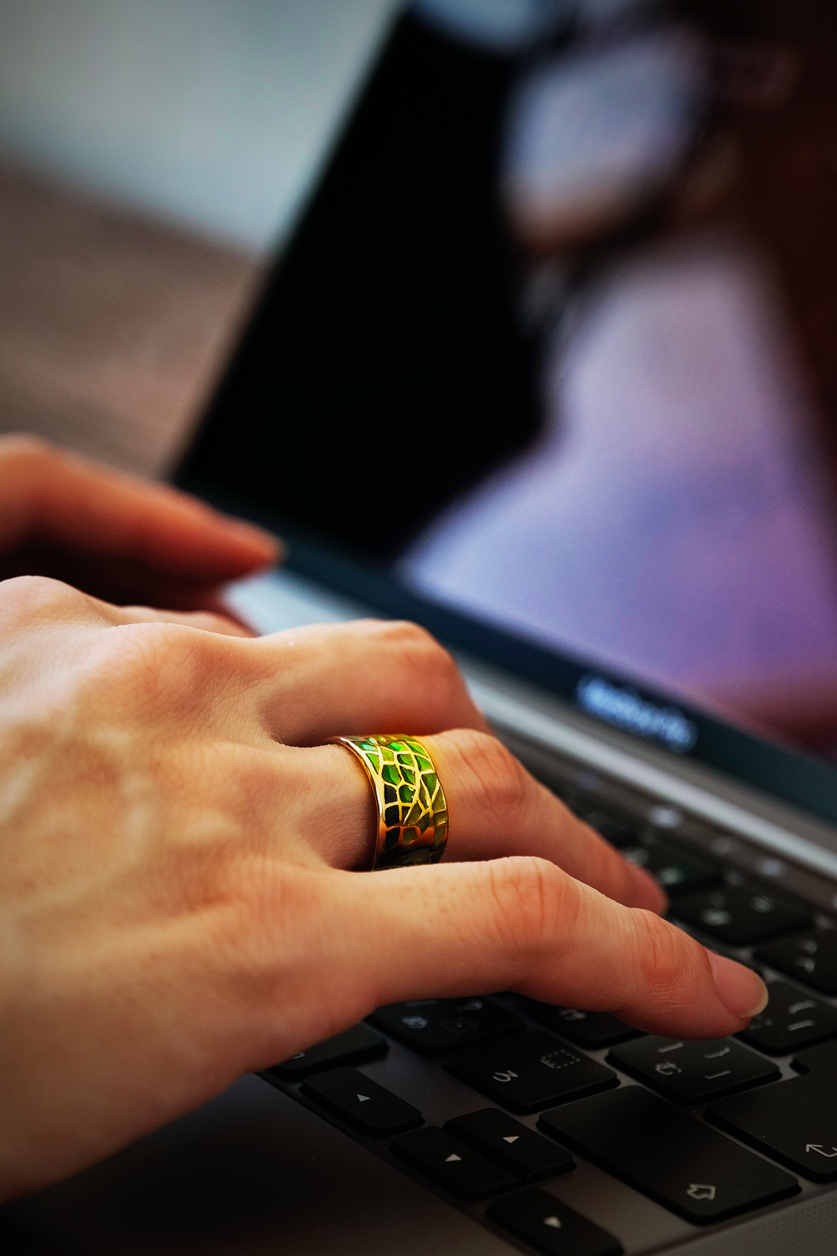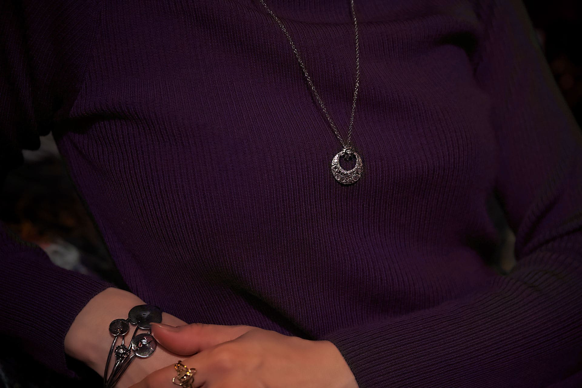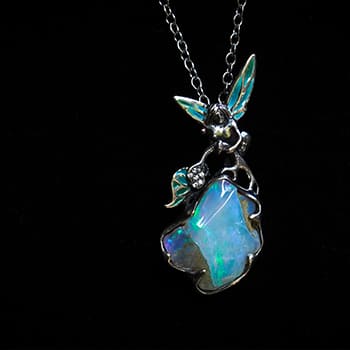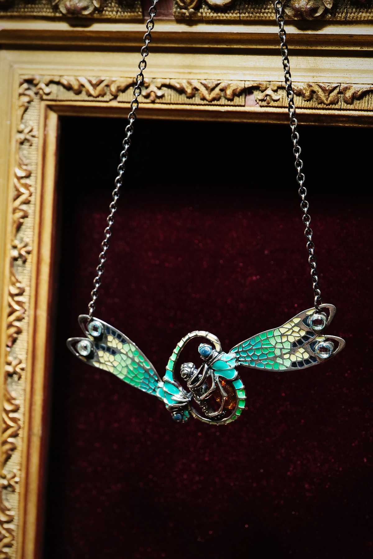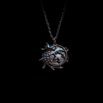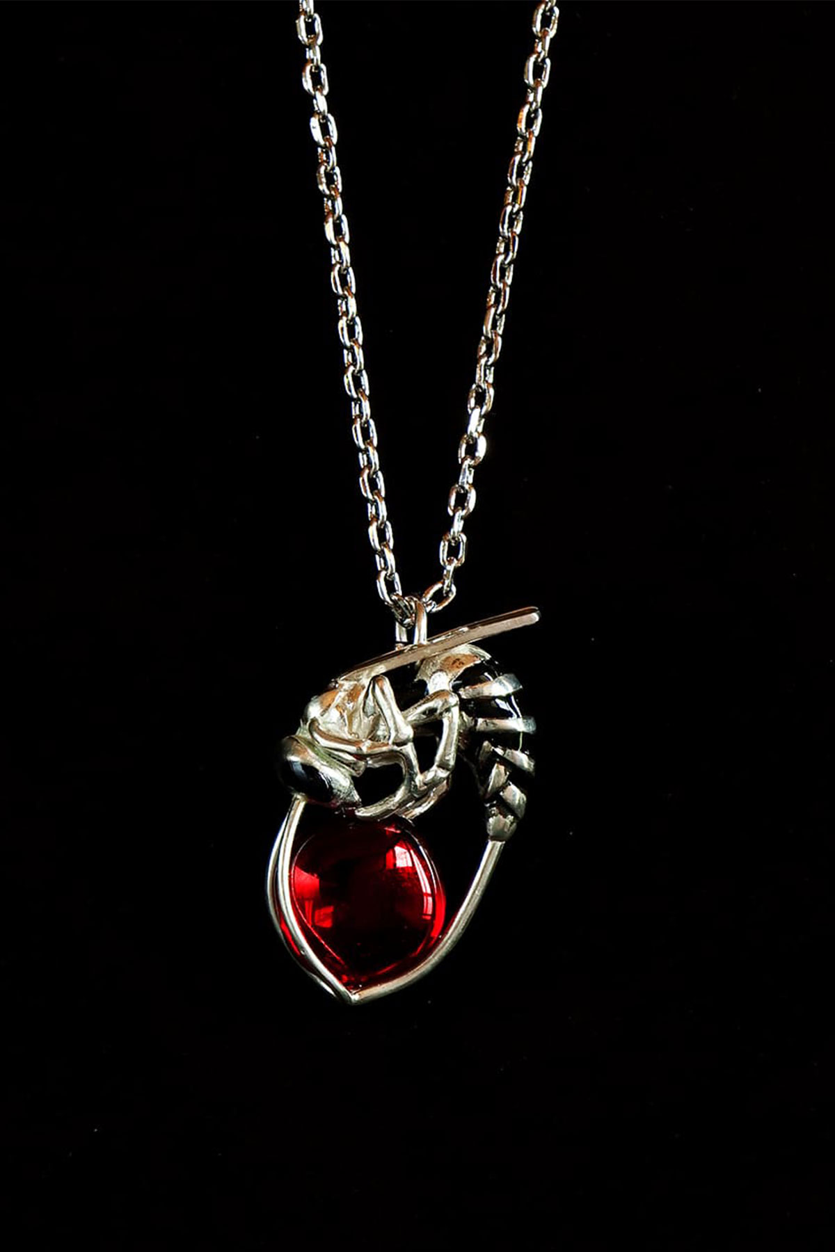 この作品では広い海を漂いながら一生のパートナーを探すタツノオトシゴを形にしました。光の反射や波のゆらめきを貝から連想し、タツノオトシゴのヒレで浮遊する水中の情景を表現しました。安心して波に身を委ねながら、きっと見つかる大事な探しものをしている旅人とは、素敵な生き方なのかもしれません。